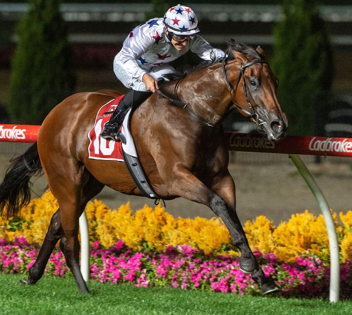 Ridden by Damien Oliver, the filly showed her versatility here when sitting farther back than she had in her previous victory with only a few horses beat early on. Oliver let her pick off horses as they entered the final 600 metre mark before swinging her wide entering the straight.