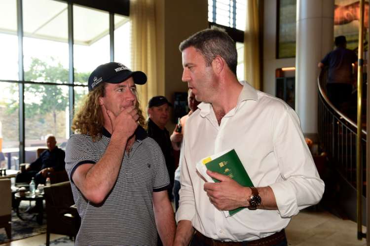 Ciaron Maher with Aquis CEO Shane McGrath