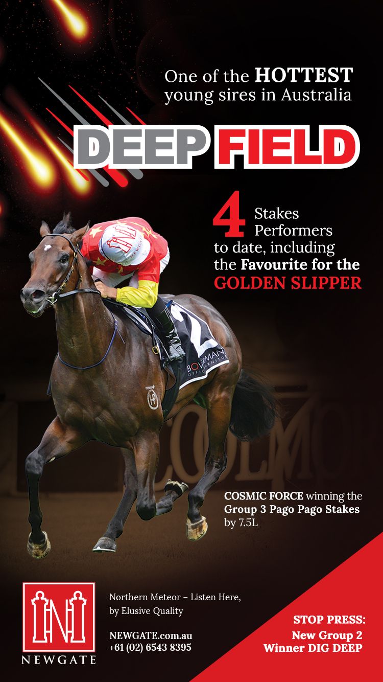The Deep Impact colt is out of the Redoute’s Choice mare Grito, a half-sister to the former champion sprinter Yell (Anabaa {USA}) and his sister Sung, the dam of the top 2-year-old and G1 Sires’ Produce S winner and G1 Golden Slipper S. runner-up Microphone (Exceed And Excel).