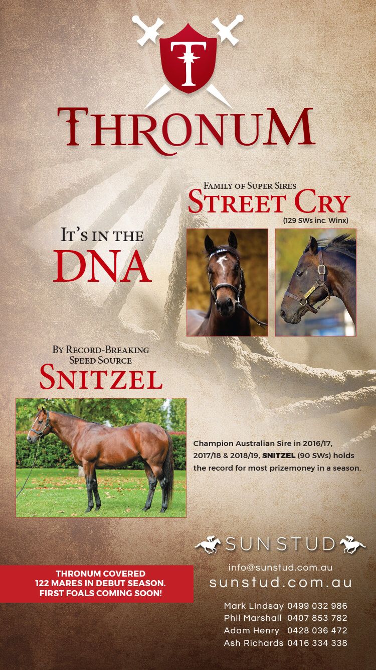 His elite progeny have demonstrated that versatility with their performances on the biggest stage. His sons Redzel and Trapeze Artist combined for a famous quinella in last year’s $13 million Everest on a Heavy 9 track, while Group 1 performances have ranged from Shamus Award’s Cox Plate and Snitzerland’s Lightning Stakes on good tracks through to Russian Revolution’s Galaxy H. on a Heavy 10.