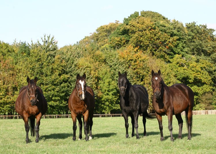 Group 1 winners Banks Hill, Heat Haze & Intercontinental with their dam Hasili (second from left) pictured at Banstead Manor in 2015. | Image courtesy Juddmonte Farms