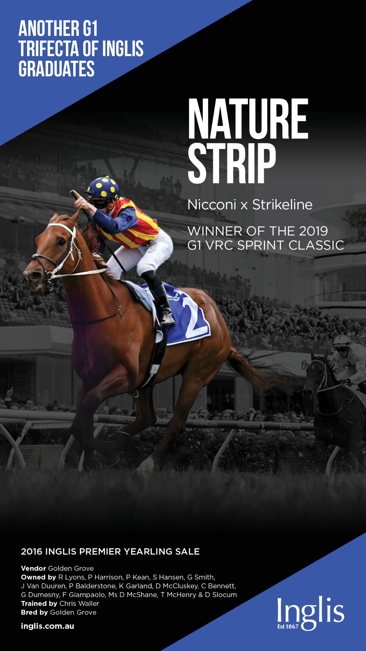 Sent to join Chris Waller in Sydney, though, he rediscovered his best form, slamming a strong field headed by Dundeel (NZ), Happy Trails and Silent Achiever (NZ) in the G1 Queen Elizabeth S. over 2000 metres at Randwick in the style of a horse who might be able to win the Cox Plate the following spring.