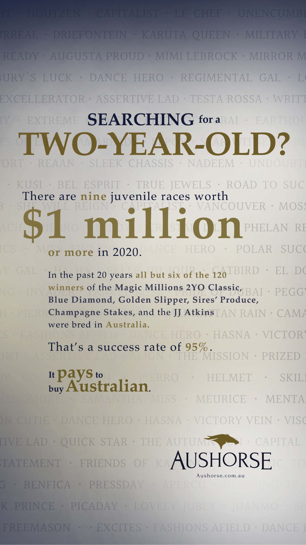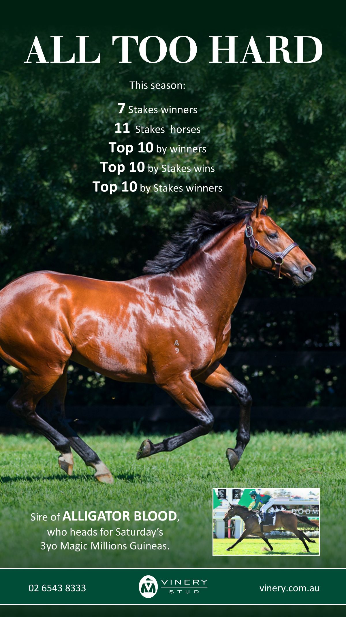 | 77 | Allez Wonder | Tavistock (NZ) | Vinery Stud, Scone, NSW (As Agent) | F |