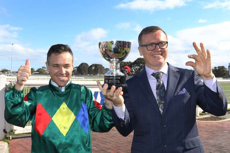 Ryan Maloney and David Vandyke when Alligator Blood won the G3 Caulfield Guineas Prelude (1400 metres)