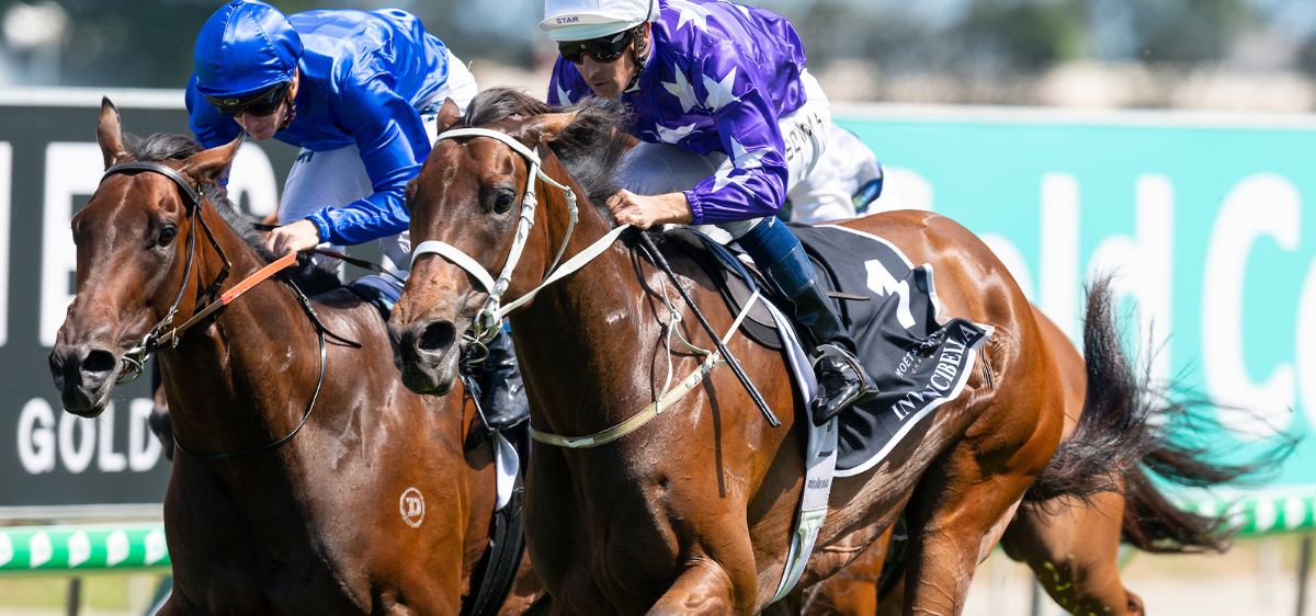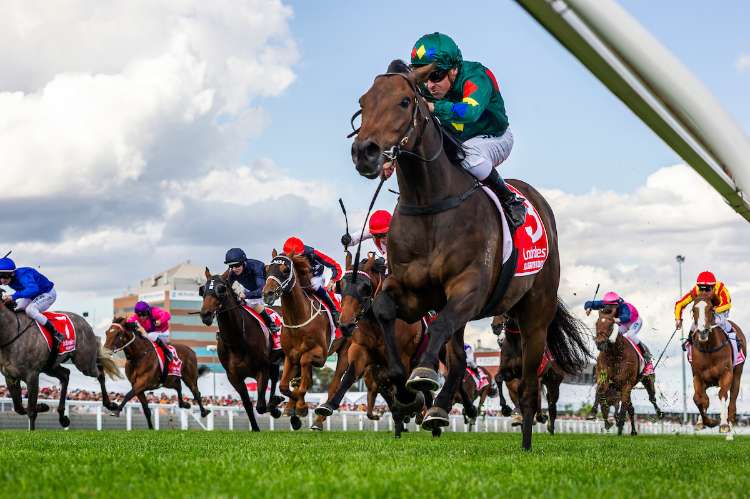 Alligator Blood, pipped-at-the-post by Super Seth (not in shot) in the Caulfield Guineas