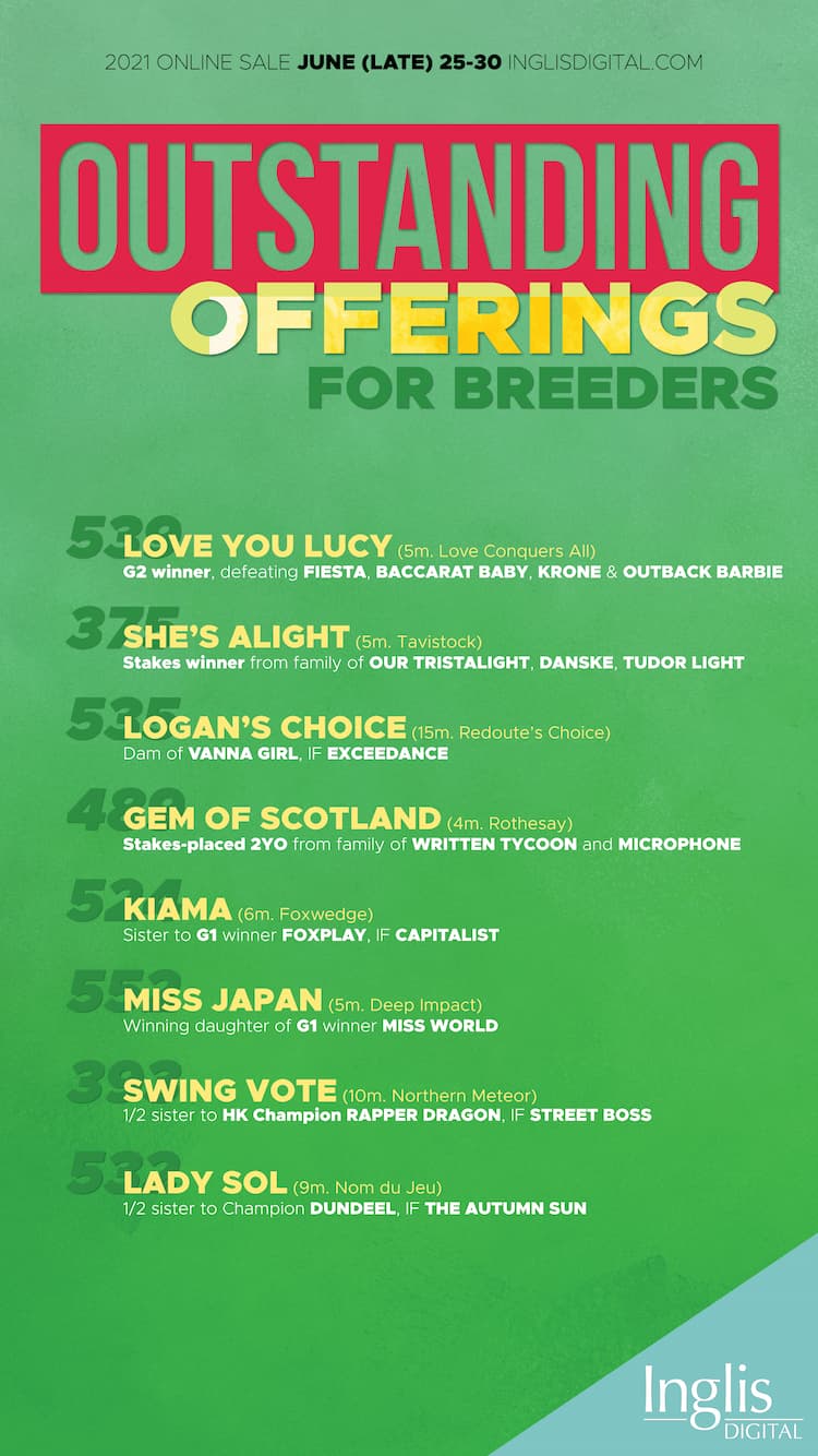 Now, breeders are set to be able to get access to his half-sister through the Inglis Great Southern Sale, where she is offered as Lot 448 as part of the Bhima Thoroughbreds' draft, in foal to Coolmore stallion Yes Yes Yes.