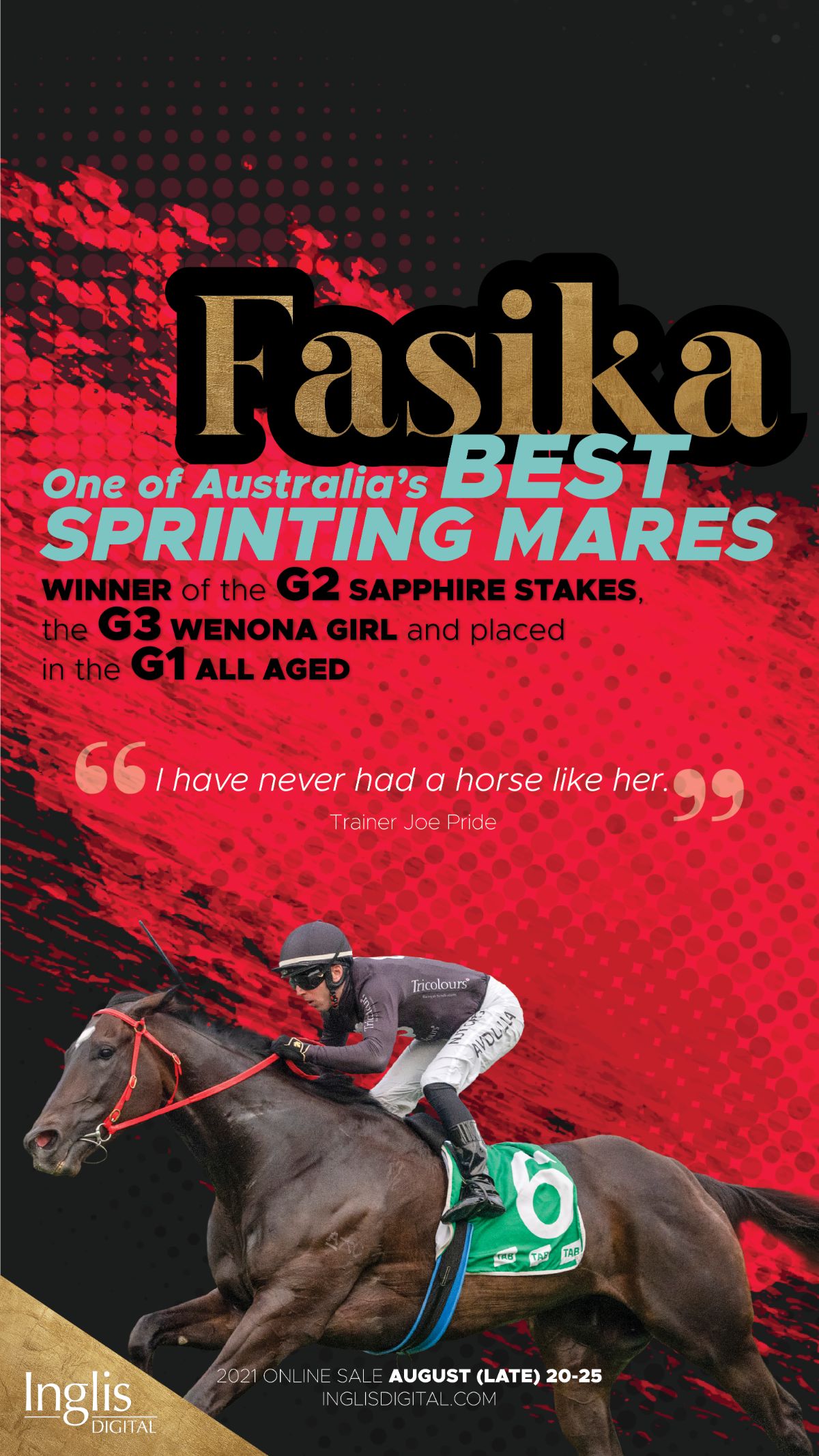 With Star Thoroughbreds having sold Invincibella (I Am Invincible), Foxplay (Foxwedge) and Fiesta (I Am Invincible) in recent years for seven-figure amounts after their racing careers, Martin is well-versed in how race performance can impact residual values for mares.
