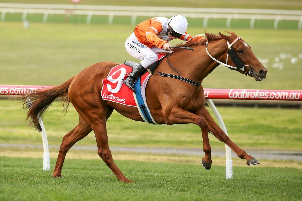 Mahogany winning the Chirnside S. in 1997 | Image courtesy of Sportpix