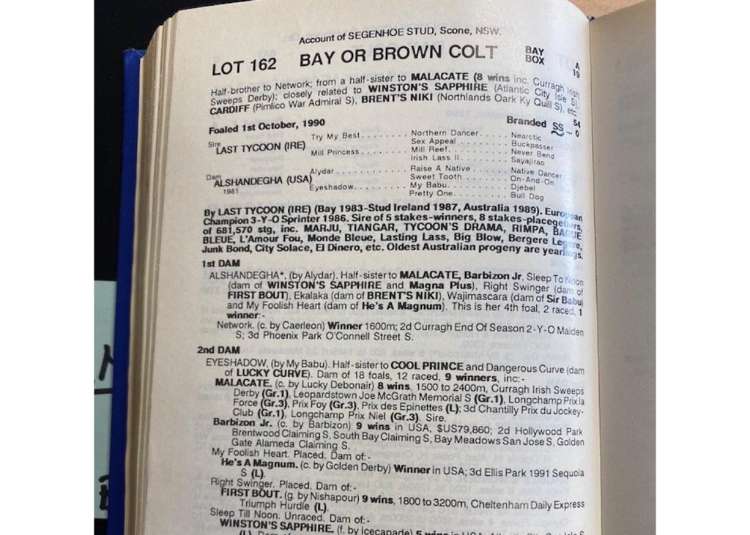 Mahogany's Magic Millions 1992 catalogue page | Image courtesy of David Chester