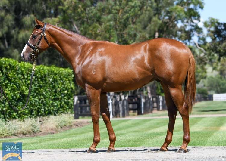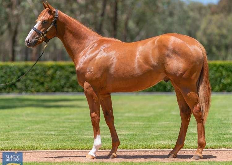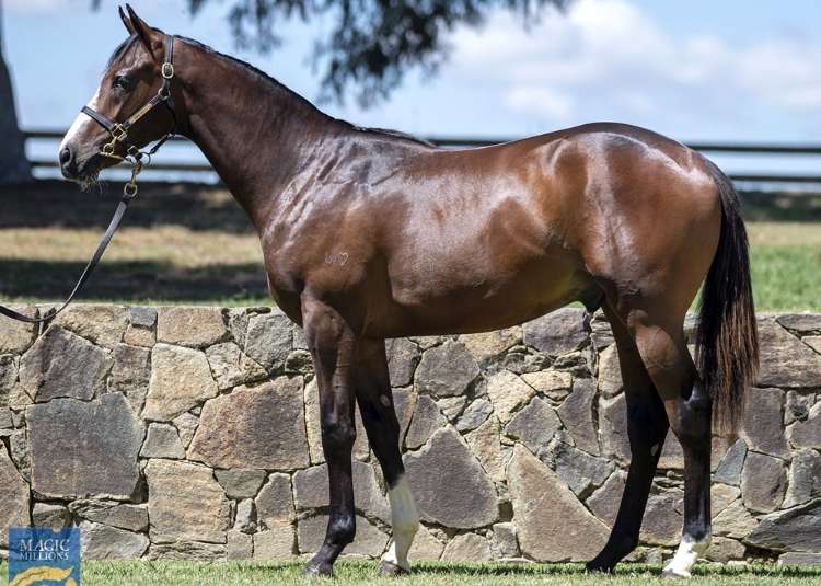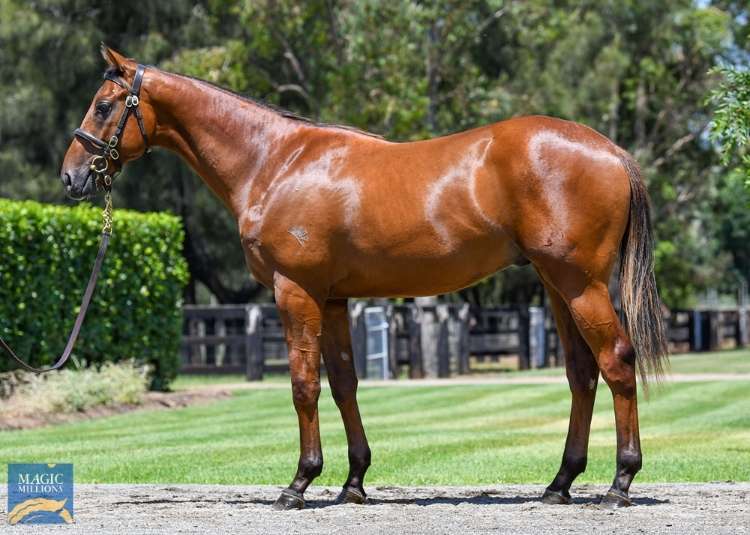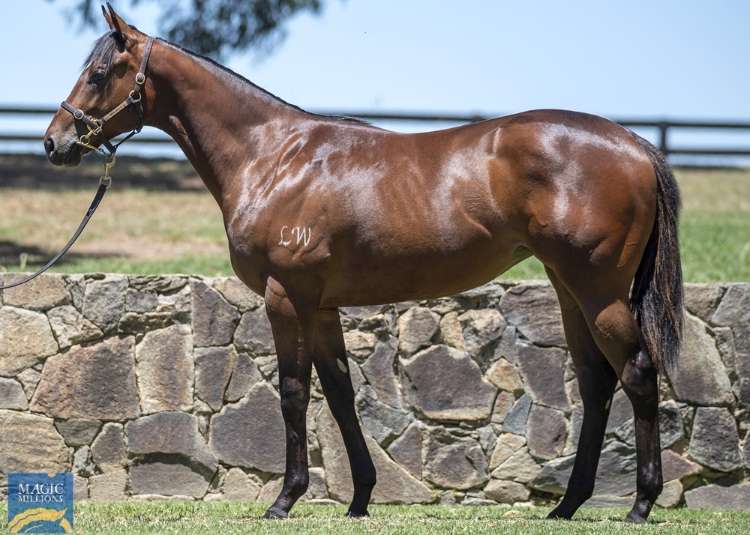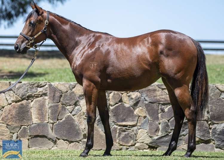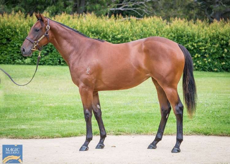 A bay filly by a son of I Am Invincible, Brazen Beau, out of Unique Magic (NZ) (Denman). The dam is a half-sister to cult horse and multiple Group 1 winner Kolding (NZ) (Ocean Park {NZ}), as well as Group 2 winner Sampson (NZ) (Dubai Destination {USA}) and Listed winner Miss Upstart (Snippetson). The second dam, Magic Star, is a half-sister to two-time Group 2 winner Make Mine Magic (Canadian Silver {Can}). This is the dam’s first foal.