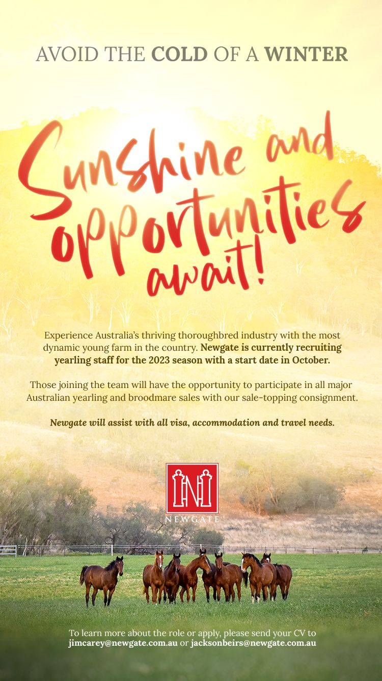 For Newgate, it’s the second year in a row that one of its stallions has won the First Season Sire title. Last year, Extreme Choice led home Capitalist and Flying Artie for a vintage trifecta.