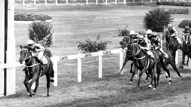 That 1975 Slipper was a memorable one for her jockey, Kevin Langby. He did as he was told by ‘TJ’, getting on the speed and keeping on. However, he had barrier 14, the widest draw, aboard Toy Show and the filly used every amount of pluck to overcome it.