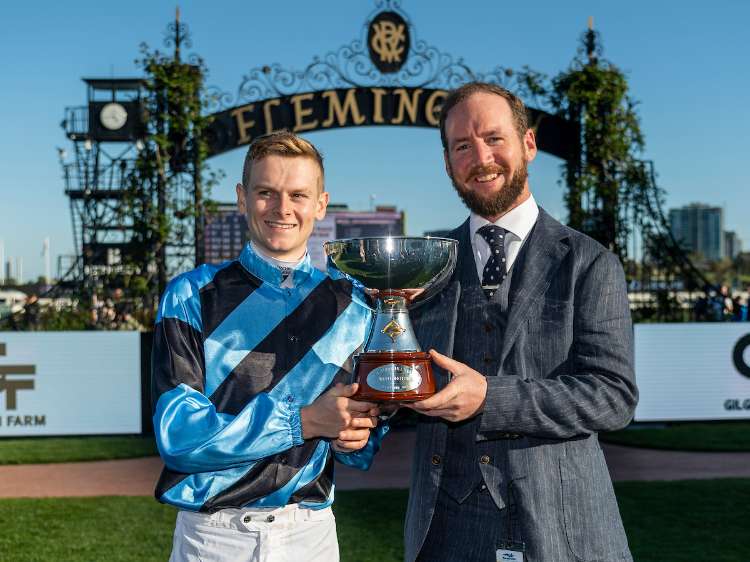 Ethan Brown and Ciaron Maher after winning the G1 Turnbull S. | Image courtesy of Darren Tindale