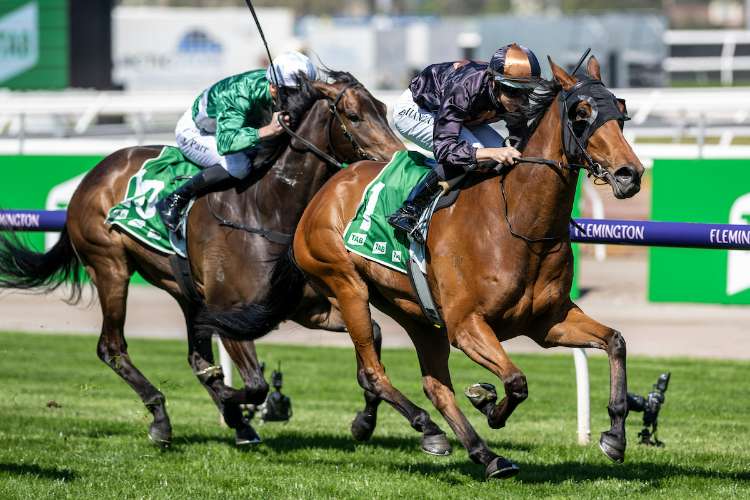 Giga Kick fights off Buenos Noches to win the G2 Danehill S. at Flemington | Image courtesy of Racing Photos