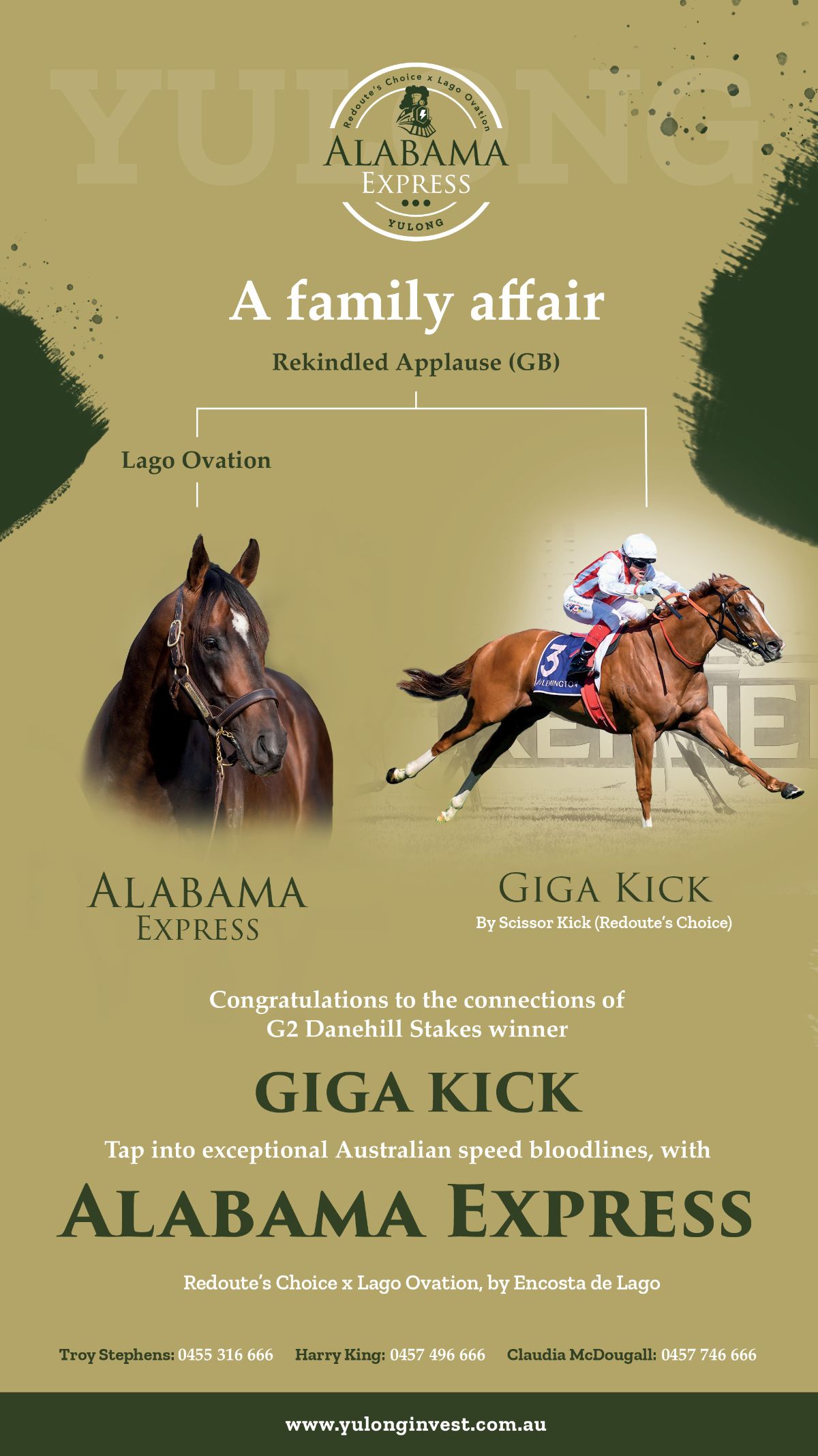 Both Baggy Green and her daughter Tofane are now fully-signed up members of the Yulong Stud broodmare band, along with two other sisters, with the Victorian-based operation having purchased the daughter of Galileo (Ire) for NZ$1.75 million on Gavelhouse Plus in June, while they paid $3.1 million for her daughter at the Magic Millions National Broodmare Sale earlier in the year.