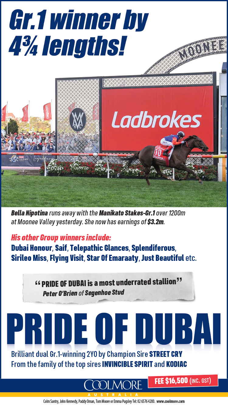 Francesco Guardi (Ire) proved far too strong for his rivals in the G2 Moonee Valley Gold Cup and in the process provided Juddmonte Farms’ unbeaten Champion, Frankel (GB) with his 104th stakes and 11th in Australia.