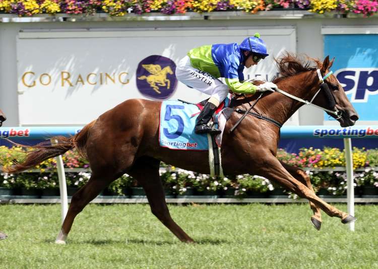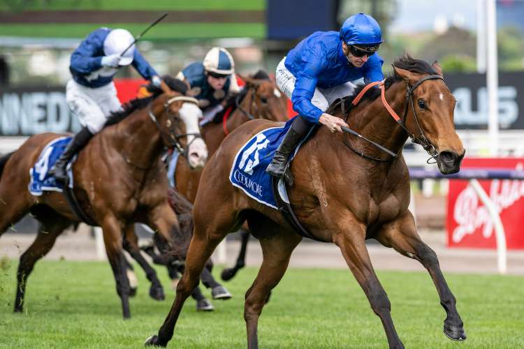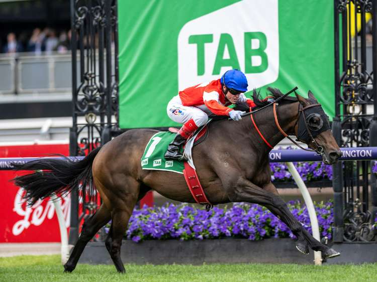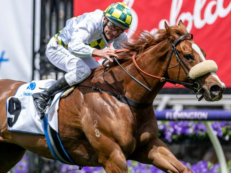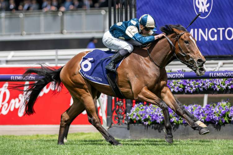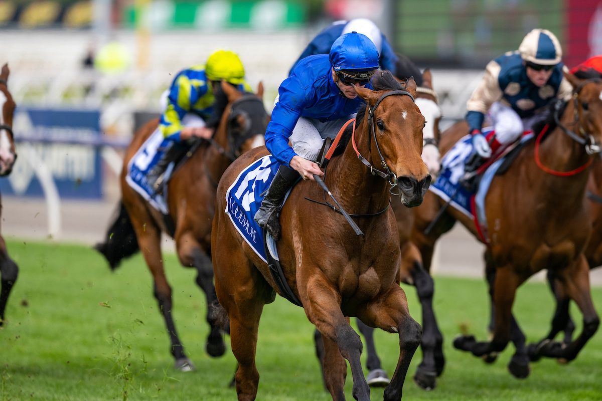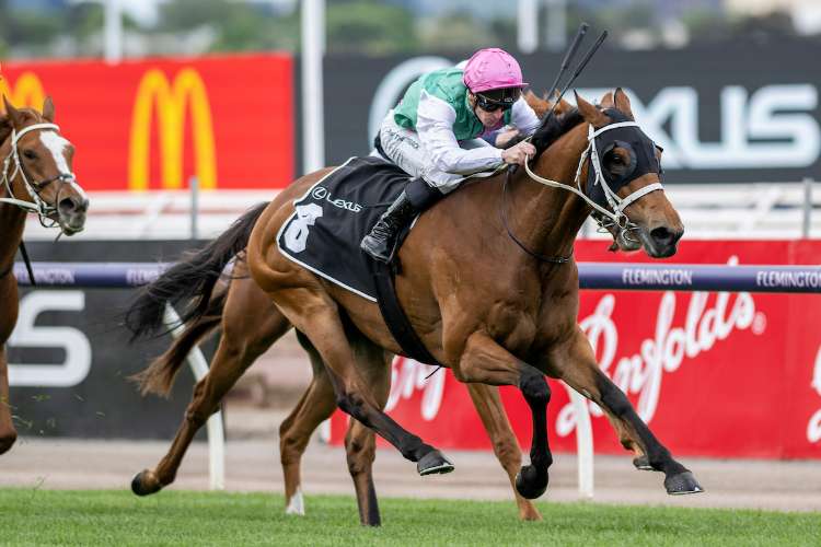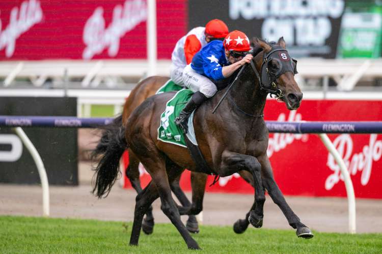 In Secret storms home to win the G1 Coolmore Stud S. at Flemington | Image courtesy of Bronwen Healy