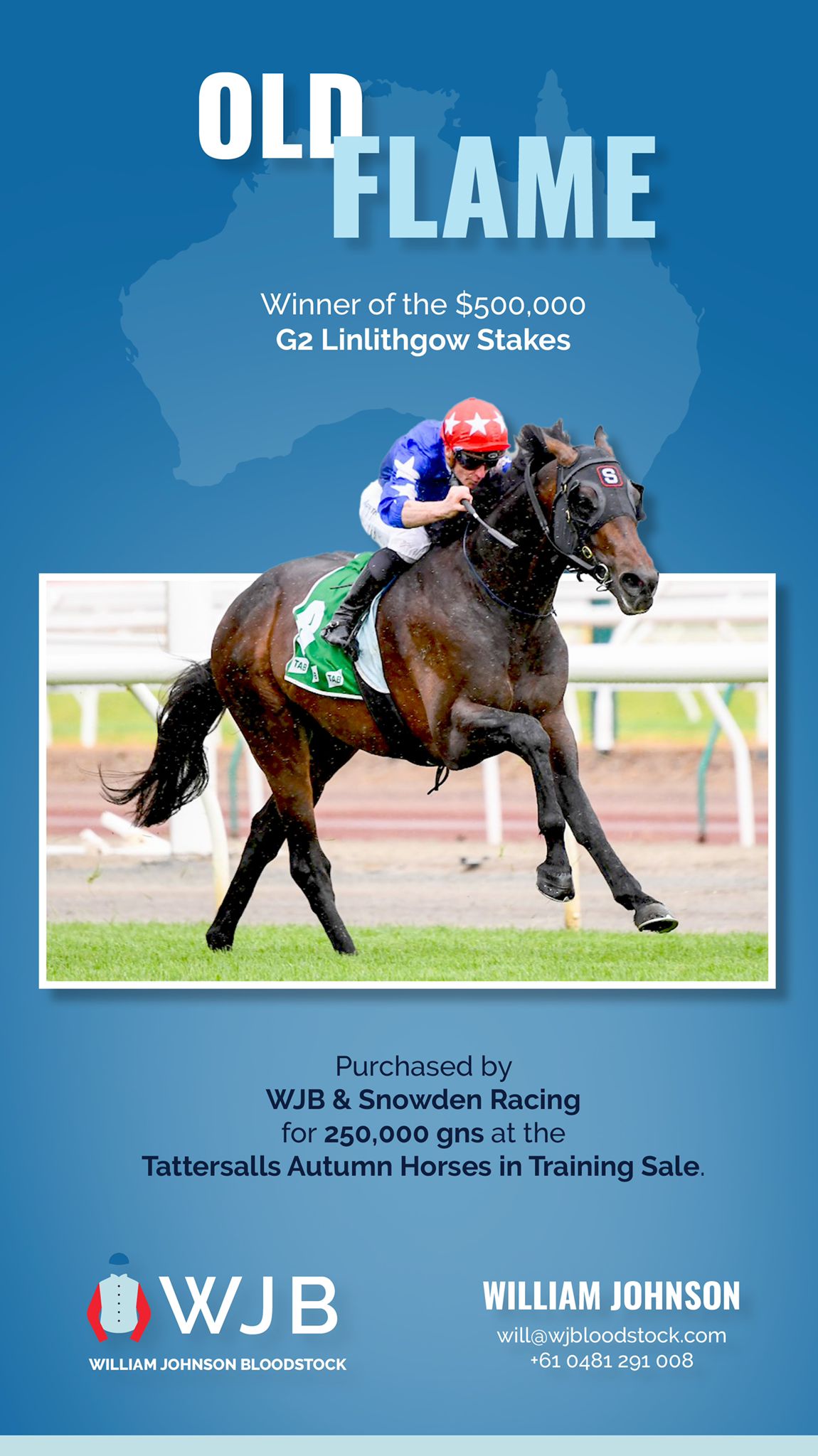 Old Flame had won twice since arriving in Australia and showed glimpses of brilliance when running second in the G2 Shannon S. at Rosehill on September 24, while he had no luck in running when finishing seventh in the Listed Weekend Hussler S. on October 8.