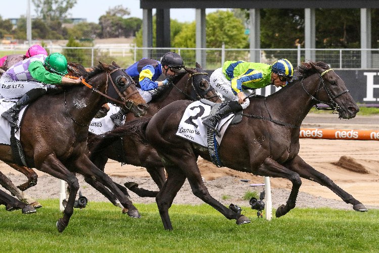 The Inevitable winning the 2019 Strathmore Community Bendigo Bank S. | Image courtesy of Racing Photos