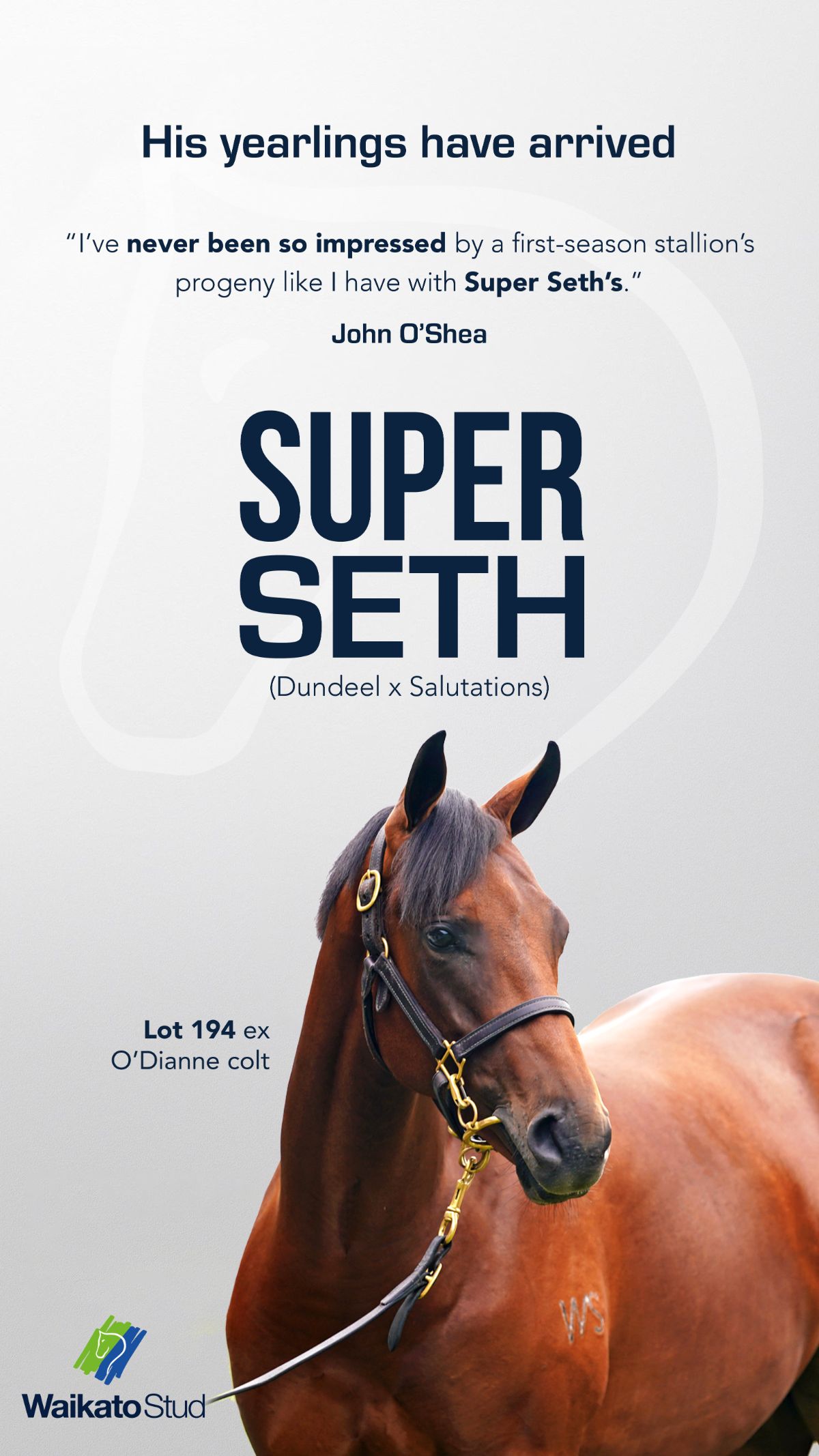 RW: Tarzino again, physically he is a replica of his maternal grandsire Zabeel with size, length and a great head. He has the most amazing skin all year round with dapples throughout his coat and is a very easy horse to like.