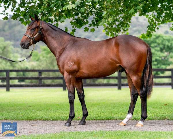 Hailing from the debut Australian crop of her Coolmore Stud-based, Triple Crown-winning sire (and one of his seven stakes winners), she was bred by Katom and purchased by Kia Ora Stud for $900,000 from the Coolmore Stud draft at the 2022 Inglis Australian Easter Yearling Sale.