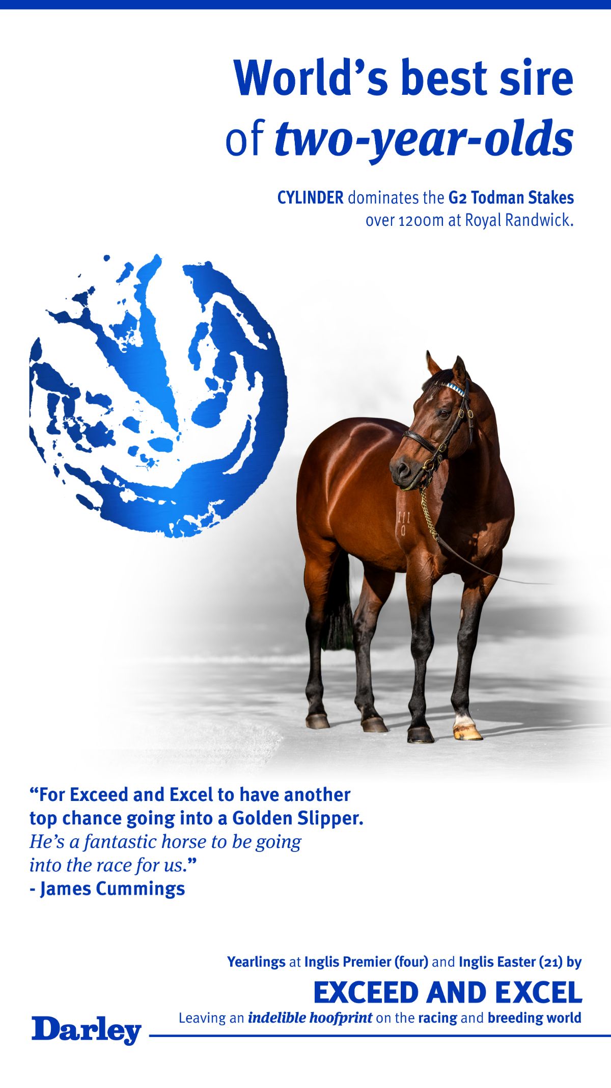 Cylinder is one of Exceed And Excel's four stakes winners out of Street Cry (Ire) mares, a cross which has also produced the Group 1 winner September Run.