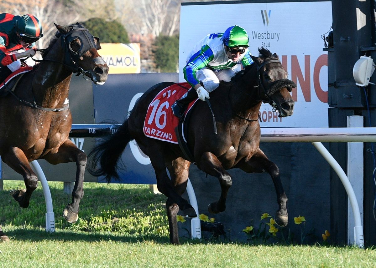 Skew Wiff (NZ) dominates the home straight to win the G1 Tarzino Trophy at Hastings | Image courtesy of Peter Rubery (Race Images Palmerston North)