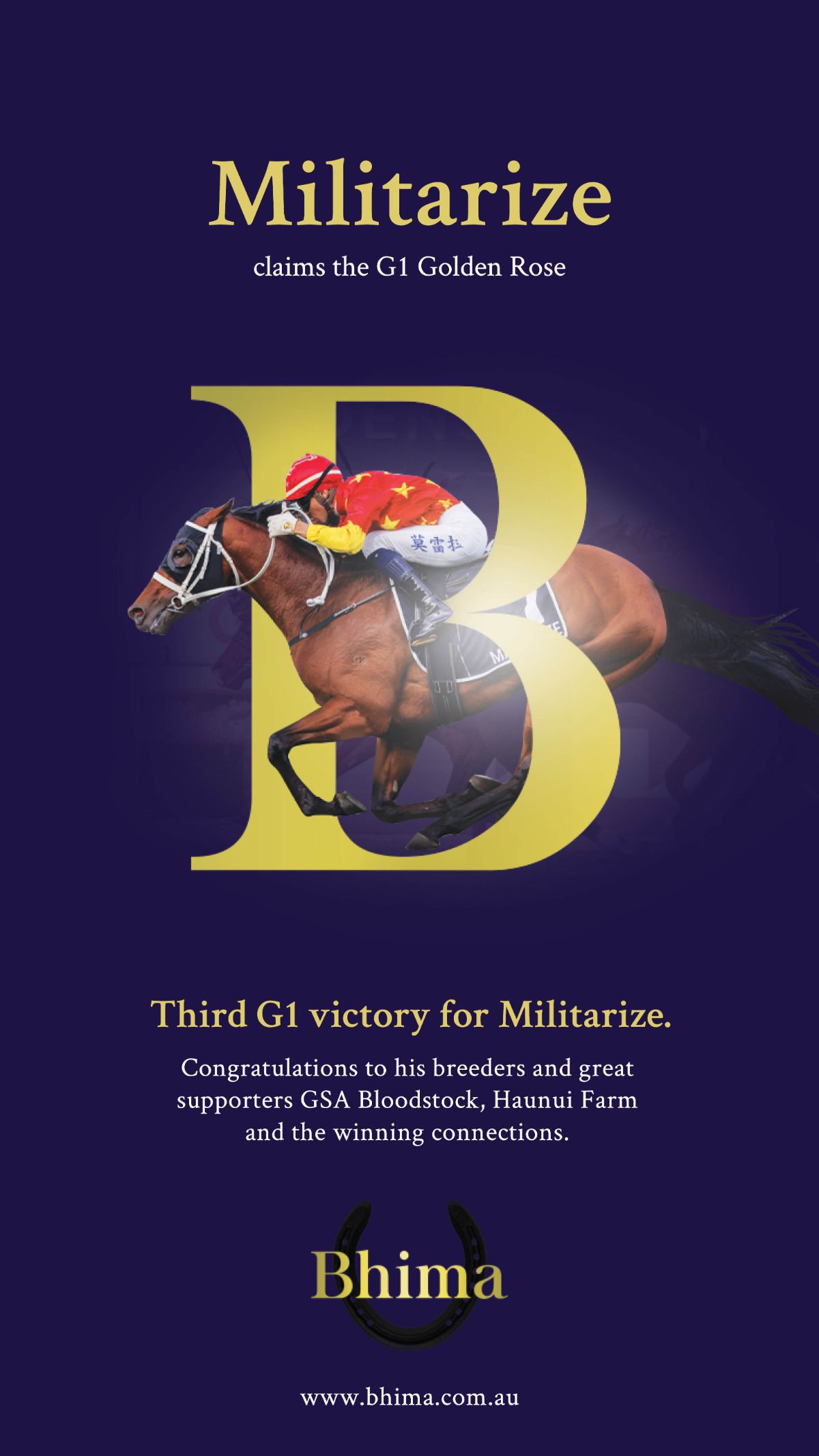 Both riding for Champion Trainer Chris Waller, Moore took the mount aboard the Golden Slipper winner Shinzo (Snitzel) owned by a Coolmore-led syndicate, and Moreira partnered with Militarize (Dundeel {NZ}), who runs in the China Horse Club silks, owned in partnership with Newgate, Trilogy, Horse Ventures, Go Bloodstock, Starlight Racing, Grant Bloodstock, Carpe Diem, Aston Bloodstock, Nick Vass Bloodstock, G1G Colts and Breeding and Aristia Park Bloodstock.