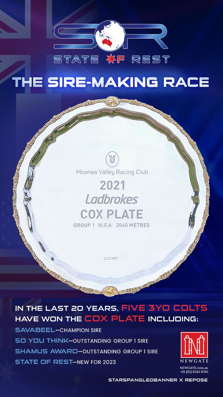 Known as It's A Dundeel (NZ) when winning his four races including the G3 Gloaming S. leading into this race in 2012, the member of the Murray Baker stable got up in close finish with another future successful sire in the shape of Proisir. Two starts later he was an unplaced favourite in the VRC Derby but he would go onto another five Group 1 victories including the ATC Derby and, at his finale, the rich Queen Elizabeth S. Retired to Arrowfield Stud in 2014, he has sired 25 stakes winners - seven of whom are Group 1 winners including Saturday's Cox Plate contender Militarize (NZ).