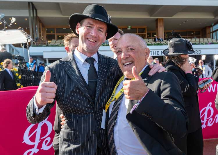 Ciaron Maher and Tony Ottobre celebrate Pride Of Jenni's victory in the G1 Empire Rose S. at Flemington on Saturday | Image courtesy of The Image Is Everything