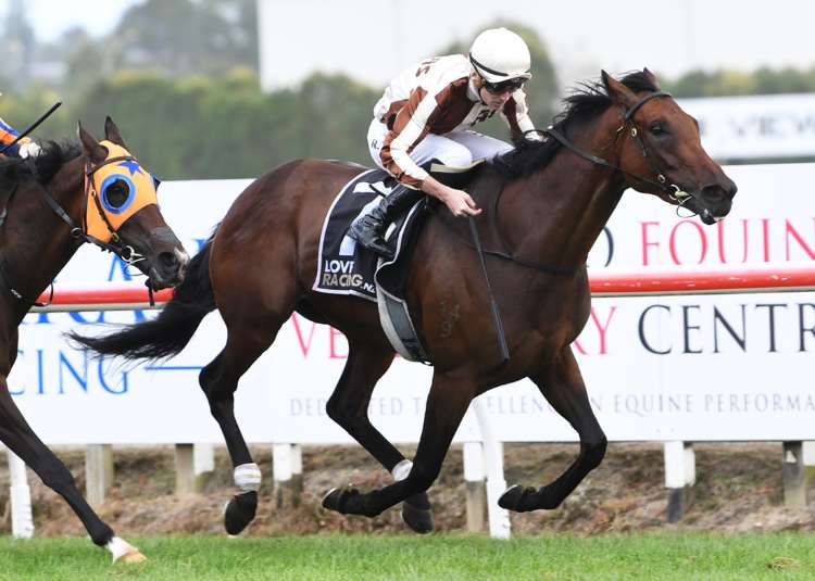 Molly Bloom (NZ) on her way to an impressive victory in the G2 Fillies Classic at Te Rapa | Image courtesy of Kenton Wright (Race Images)