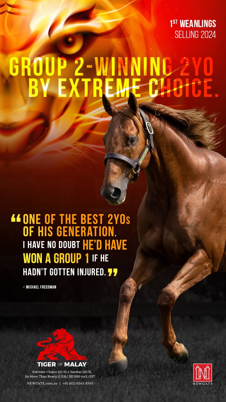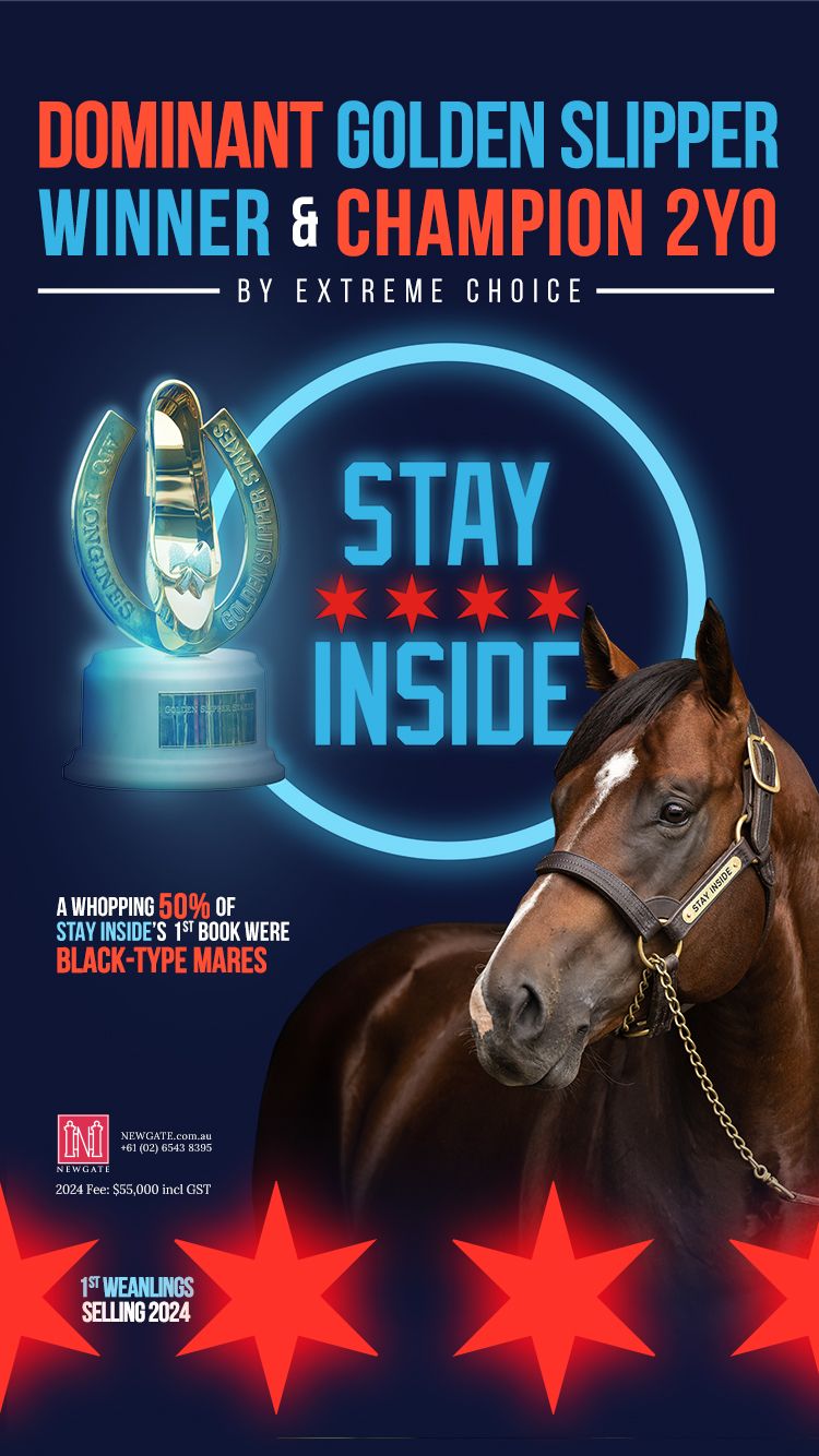Extreme Choice went on to produce three stakes-winning 2-year-olds in his first crop, including G1 Golden Slipper-winning Champion 2-year-old Stay Inside, G2 Sires' Produce S. winner Tiger Of Malay, and Listed Woodlands S. winner Xtremetime. This success led Newgate to make his fee private for the subsequent breeding season, before opening at $275,000 (inc GST), a whopping nine times what was paid for the breeding right back in 2018.