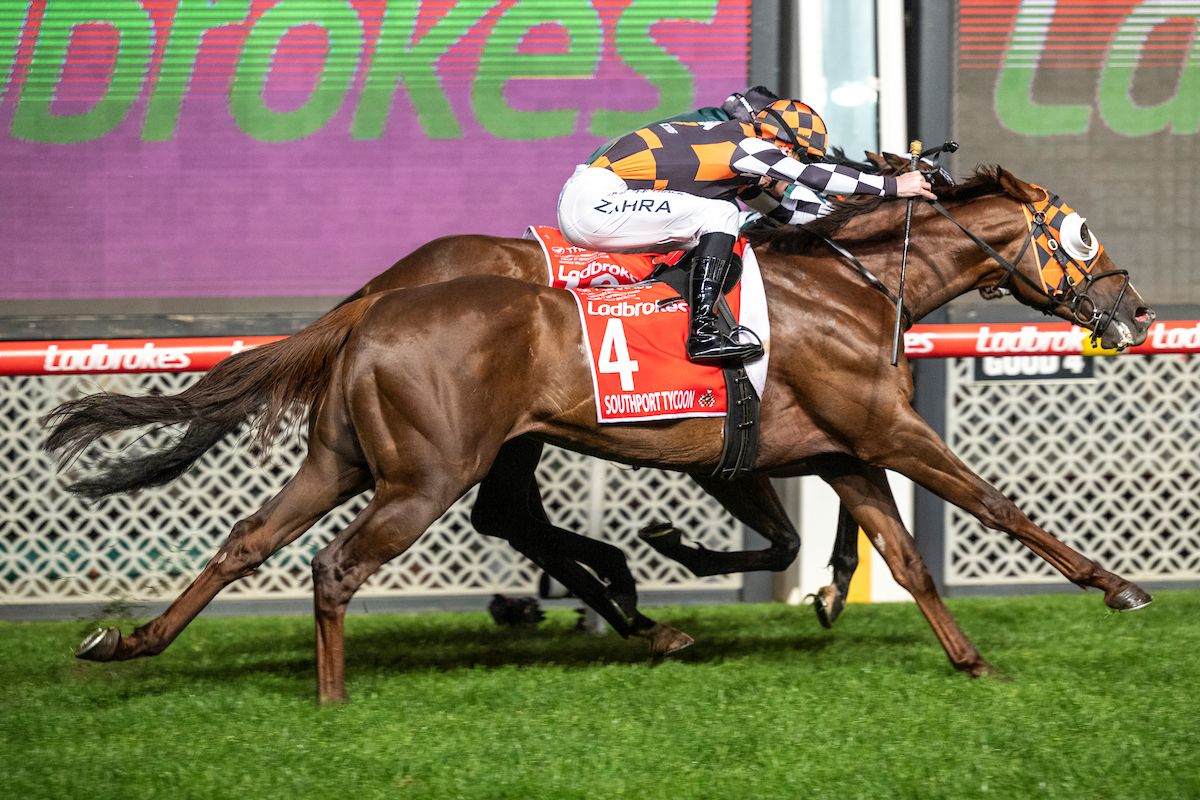 Southport Tycoon (Written Tycoon) grew wings on the Moonee Valley straight to salute by a bob of the head in a thrilling Manikato S., making it a night to remember for the Ciaron Maher stable.