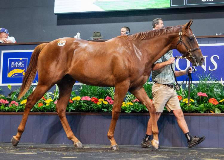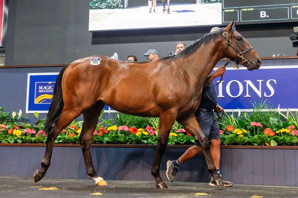 Lot 489 - Snitzel x Humma Humma (colt) sold for $2,800,000 to Ciaron Maher Bloodstock on behalf of Phil Cunningham | Image courtesy of Magic Millions
