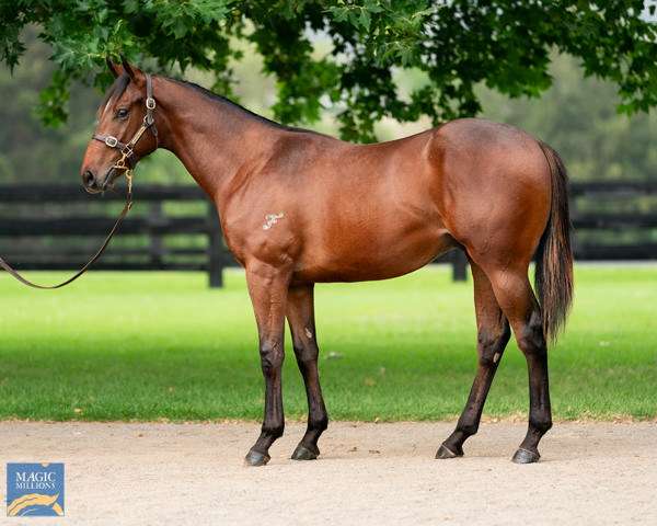 Gallery: Lot 742 - Frankel (GB) x Of Good Cheer (GB) (filly) sold for $900,000 to Ciaron Maher Bloodstock/Belmont Bloodstock (FBAA), images courtesy of Magic Millions