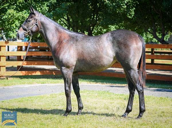 A daughter of the G3 Sir John Monash Stakes winner Miss Promiscuity (Magnus), she attracted strong bidding with John O’Shea, Charlton Racing and James Bester Bloodstock happy to take her home for $230,000.