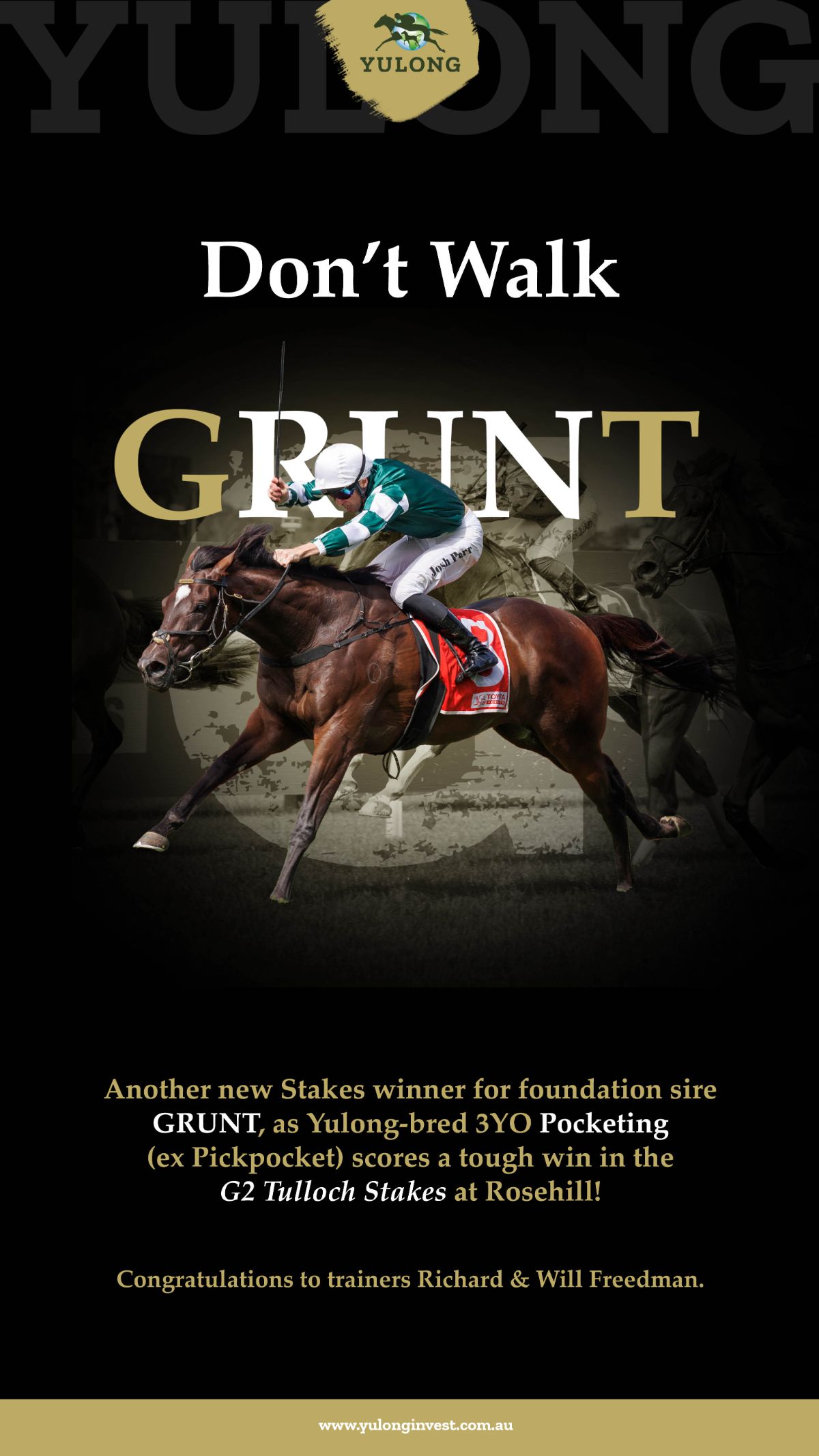 Historically, there have been very few stallions capable of producing consistent stakes winners on the other side of the world without ever standing in that country. Frankel (GB) is the rare exception, continuing to defy expectations and break records across the globe.