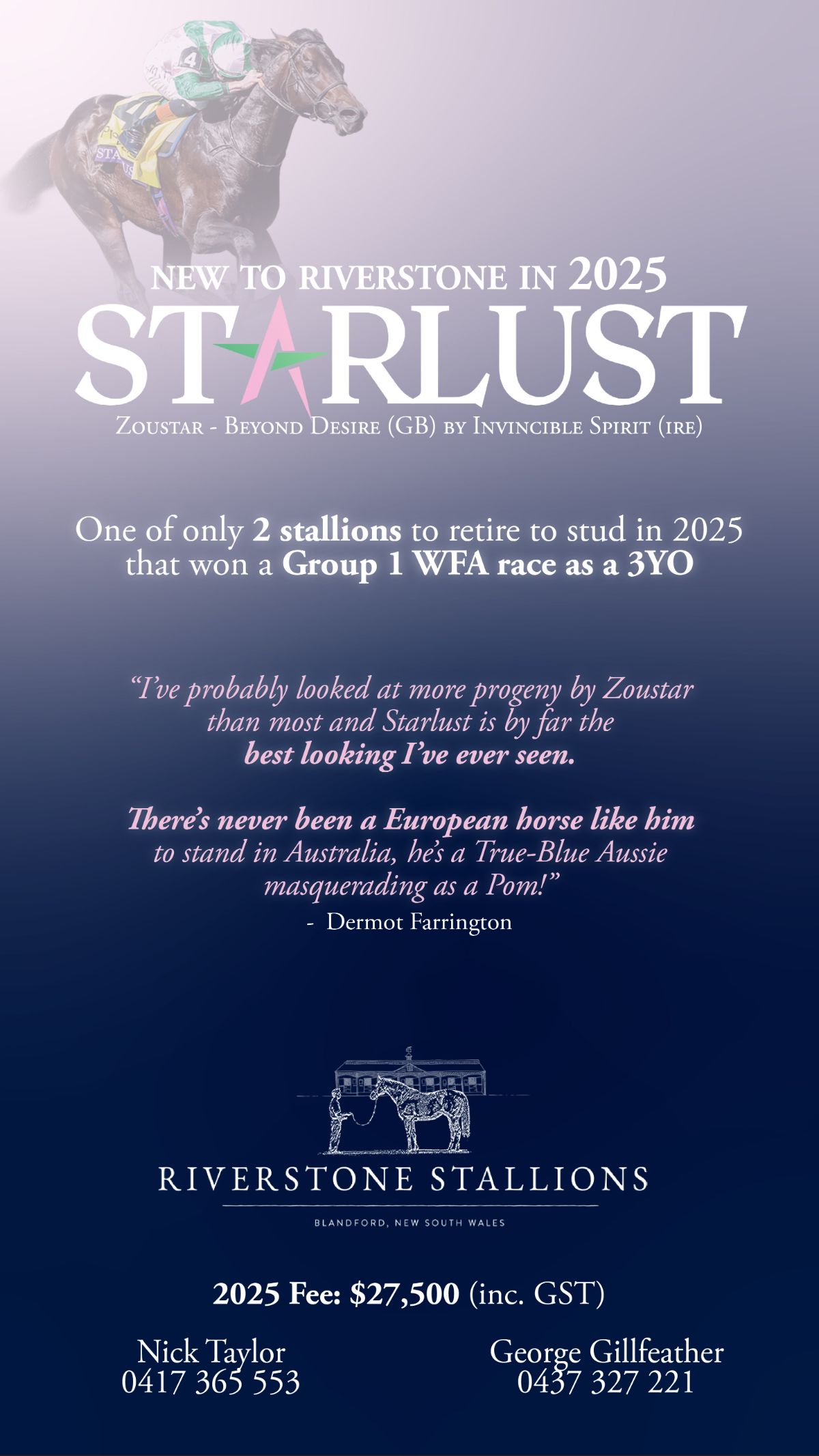 Farnan, the only other top five represented stallion to have runners, ties with Acrobat for second place, followed by popular sires Home Affairs and Stay Inside, whose yearlings have flown off the shelves at the sales this year. Farnan’s first 2-year-olds have raked in the winners and delivered him three stakeswinners to date, earning him a $22,000 fee boost to $77,000 (inc GST) for 2025.