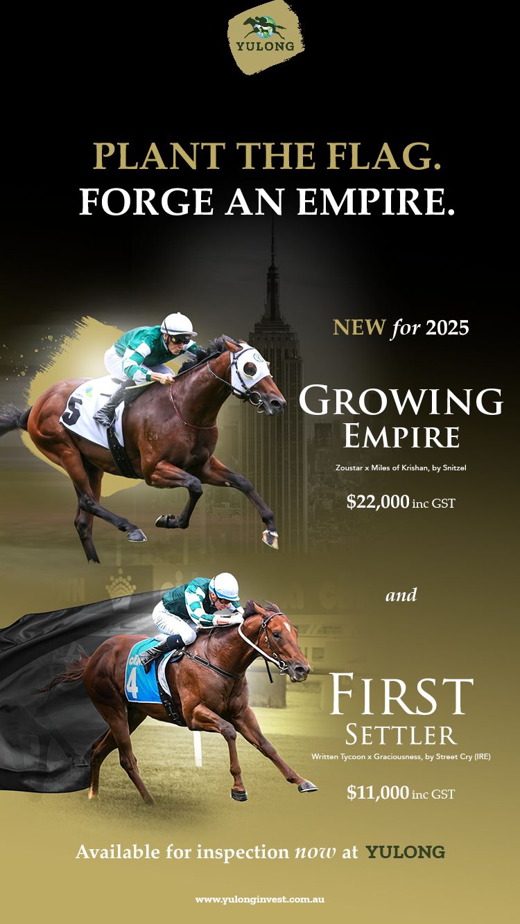 Gooree Park’s red and black striped colours have graced the winner’s circle in most of Australia’s great races, and their impressive list of top flight winners include Don Eduardo (NZ), Desert War (Desert King {Ire}), Northern Meteor, Laser Hawk (Artie Schiller {USA}), Hallowed Crown, Your Song, Prized Icon, and Tropical Squall (Prized Icon).