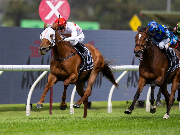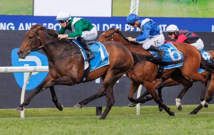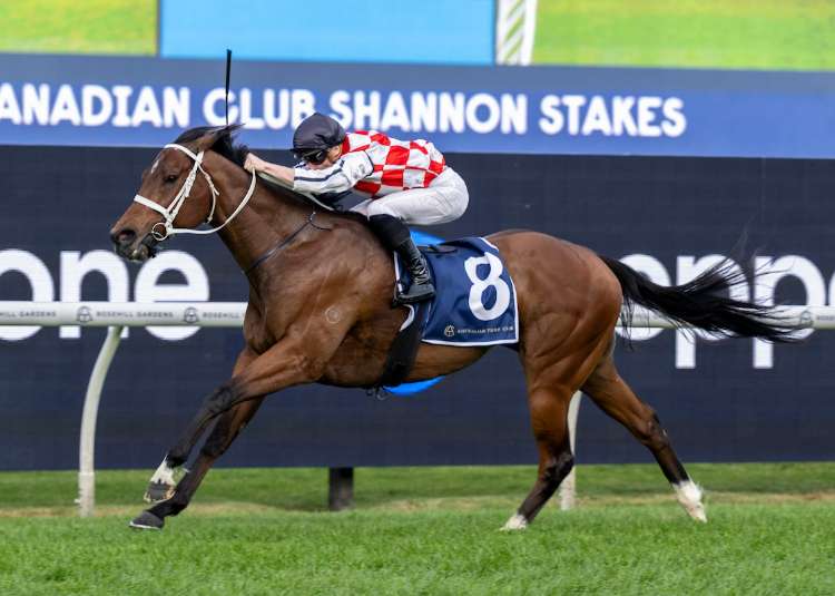 Waterford (Ire) (Awtaad {Ire}) scores a first stakes victory in the G2 Shannon Stakes as part of a Group double for Chris Waller.