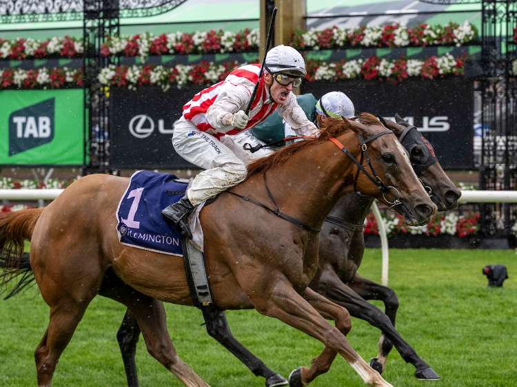 Ceolwulf (NZ) (Tavistock {NZ}) pulled off a gutsy big finish in a sopping wet G1 VRC Champions Mile to deny Pericles (Street Boss {USA}) and secure back-to-back spring Group 1s.