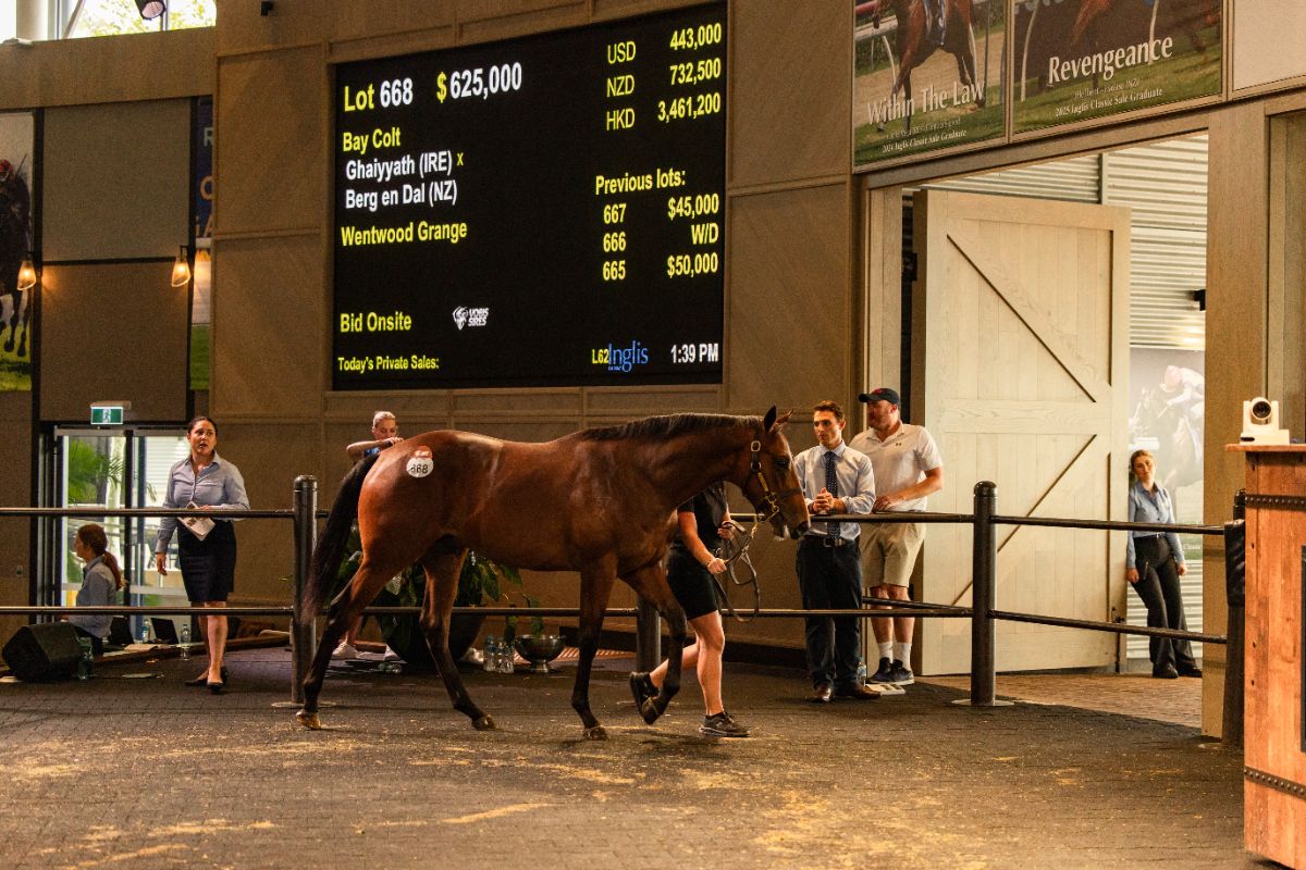 The final day saw Wentwood Grange’s Ghaiyyath (Ire) colt, Lot 668 top the whole sale at $625,000 to McEvoy Racing and Belmont Bloodstock (FBAA). Hellbent’s colt, Lot 189, ended up in fourth overall, at $400,000 to the final bid of BK Racing and Portelli Racing from Riversdale Farm.