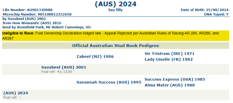 Last year’s sale saw a clearance rate of 78% with an average of $52,905 and a median of $30,000. The 2025 top lot, a colt by Too Darn Hot (GB) from Enbihaar (Magnus) sold for $775,000 to the Equine Growth Fund. They put him through Widden Stud’s Easter draft this week, where he sold for $2.2 million to Watership Downs, McKeever Bloodstock and Gai Waterhouse and Adrian Bott Racing.