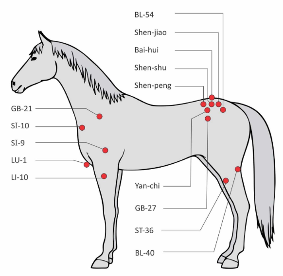 Locations of the acupuncture points on the horses used in this study | Image courtesy of South African Veterinary Association